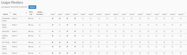 6. Manage Dues automatically charges bowlers for date boxes that are checked.