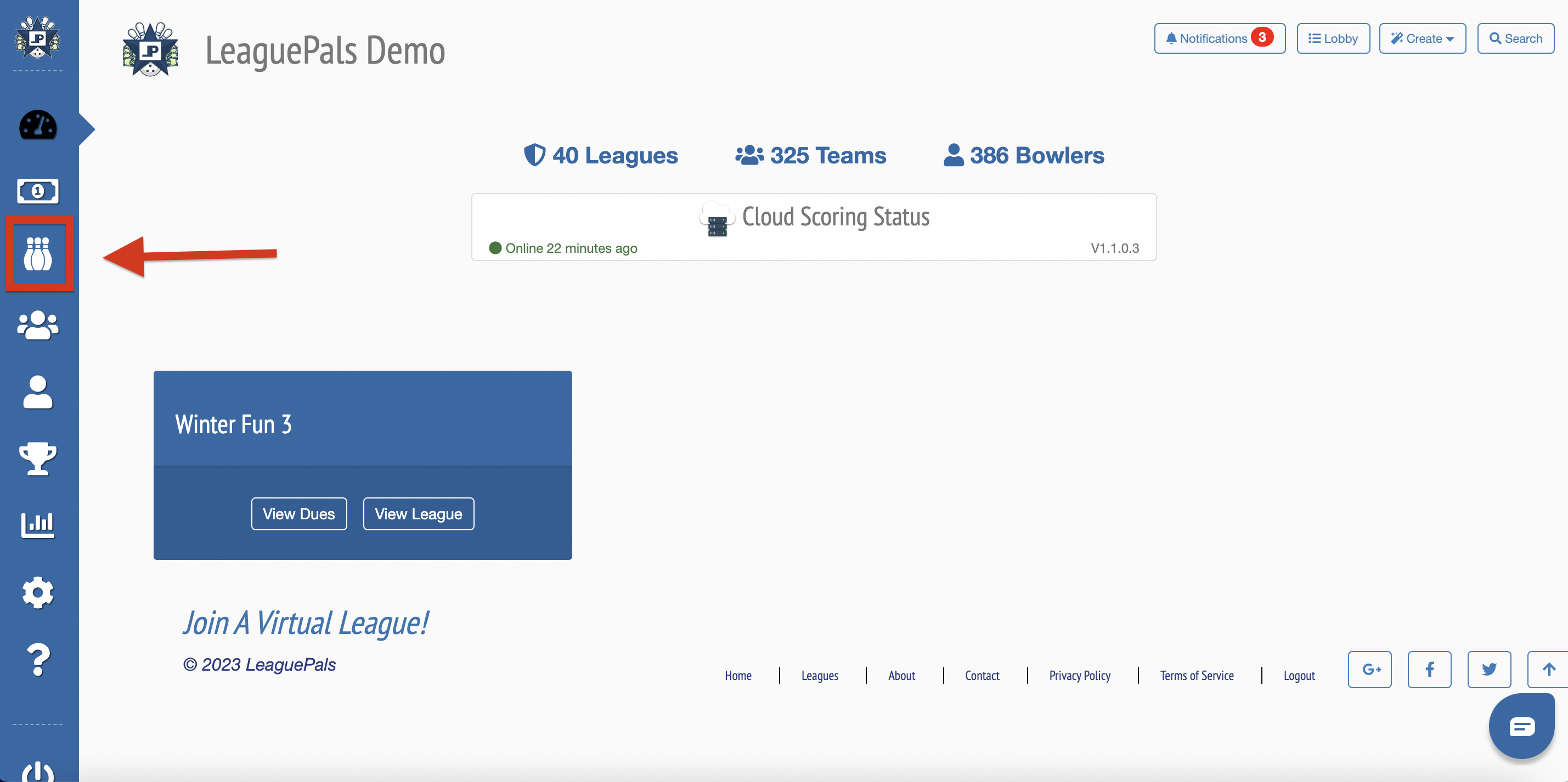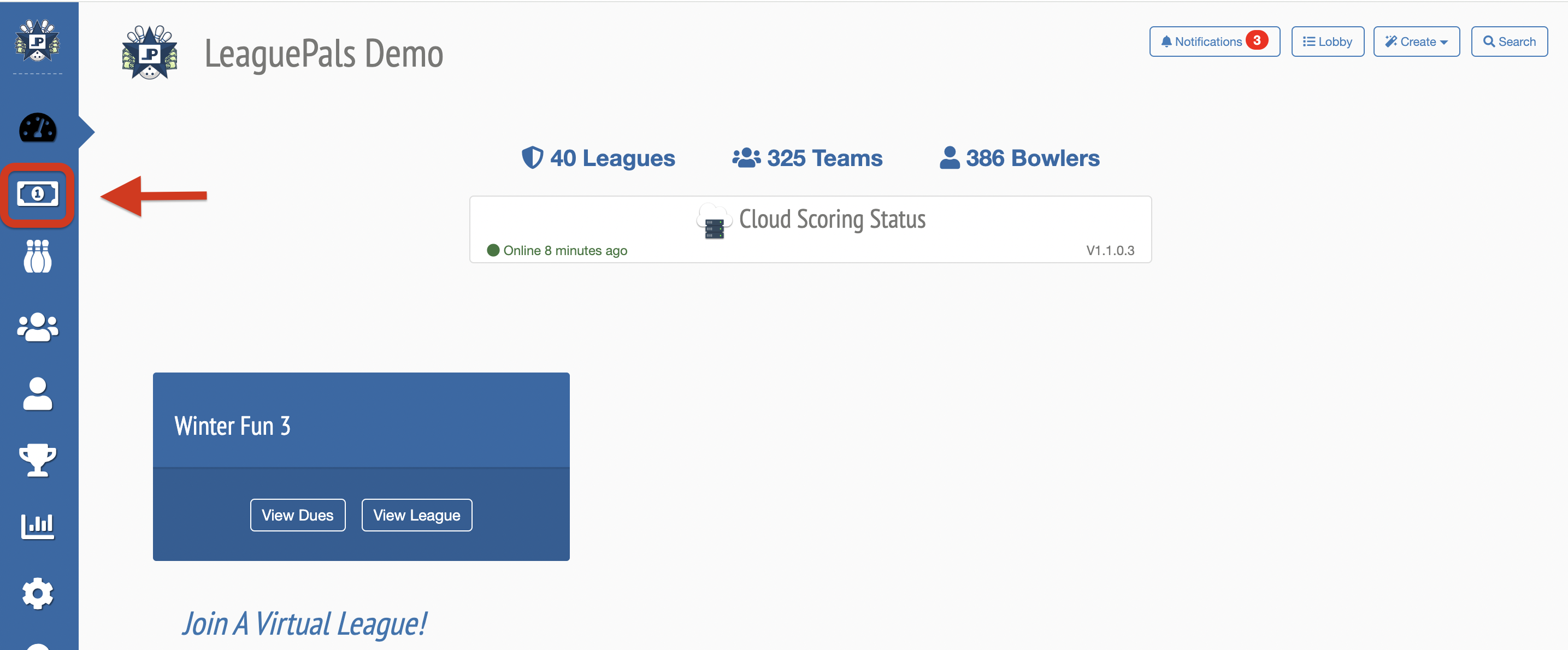 3. Go to Manage Leagues or Manage Dues