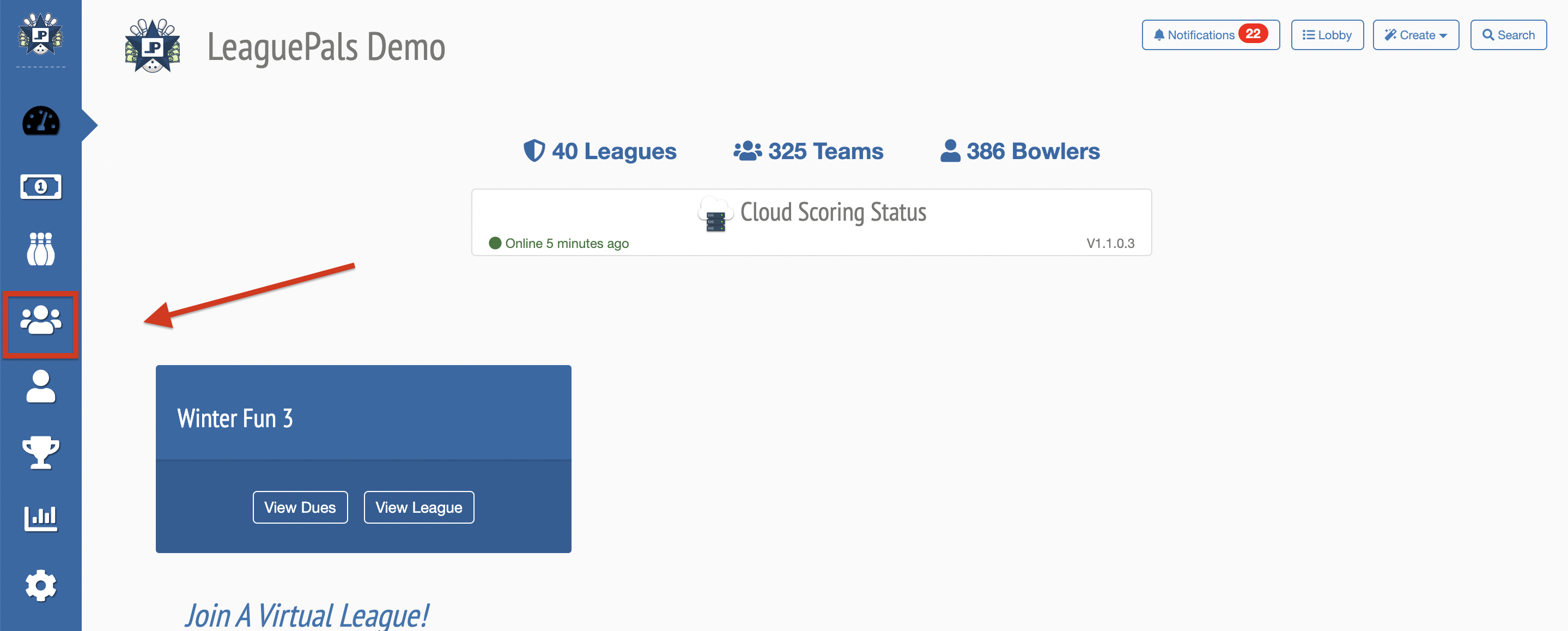 2. Select the League you would like to manage, and click the arrow next to each team to expand the team.